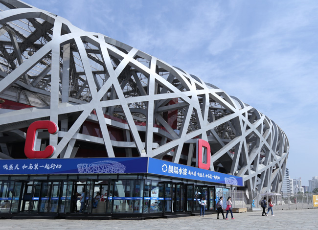 国庆游客试刷鸟巢牌水漆 环保无味受青睐